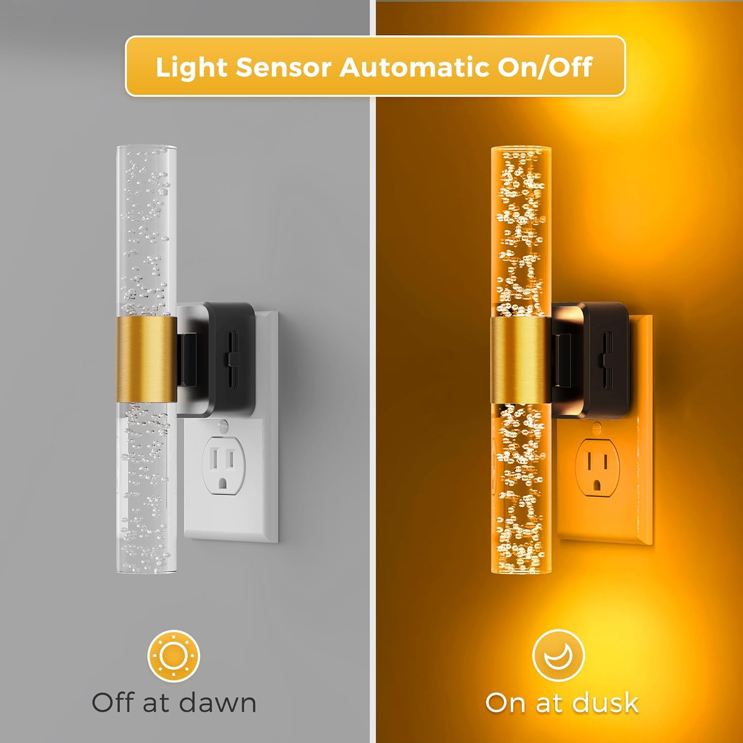 • Automatic Light Sensors Night Light: With dusk to dawn sensor, the plug in night light turns on when dim and off when bright, offering hands-free operation and energy efficiency for illumination exactly when needed.