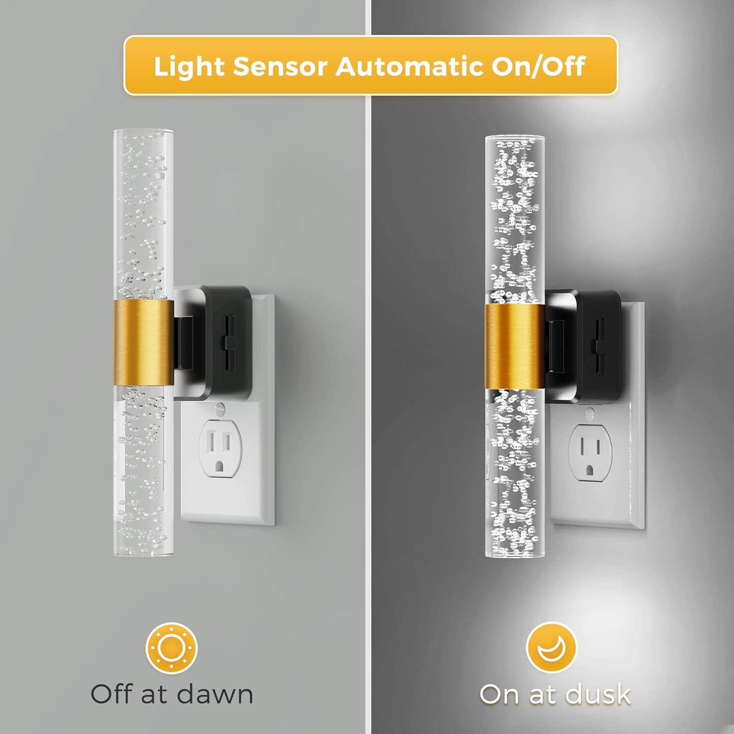 • Automatic Light Sensors Night Light: With dusk to dawn sensor, the plug in night light turns on when dim and off when bright, offering hands-free operation and energy efficiency for illumination exactly when needed.