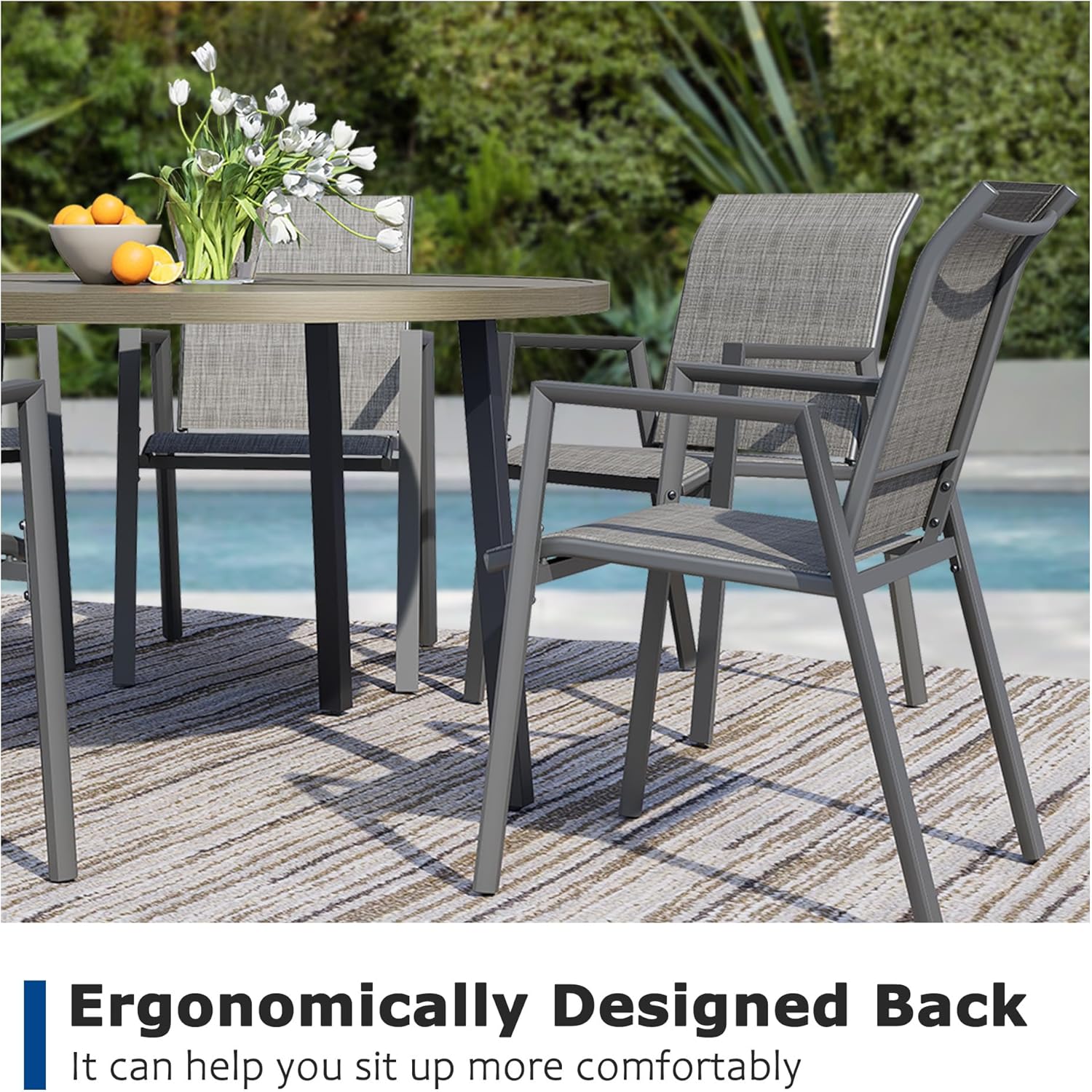• 【Breathable & Comfortable Seating】Designed with Textilene fabric, these patio chairs provide excellent breathability, ensuring a cool and comfortable seating experience
