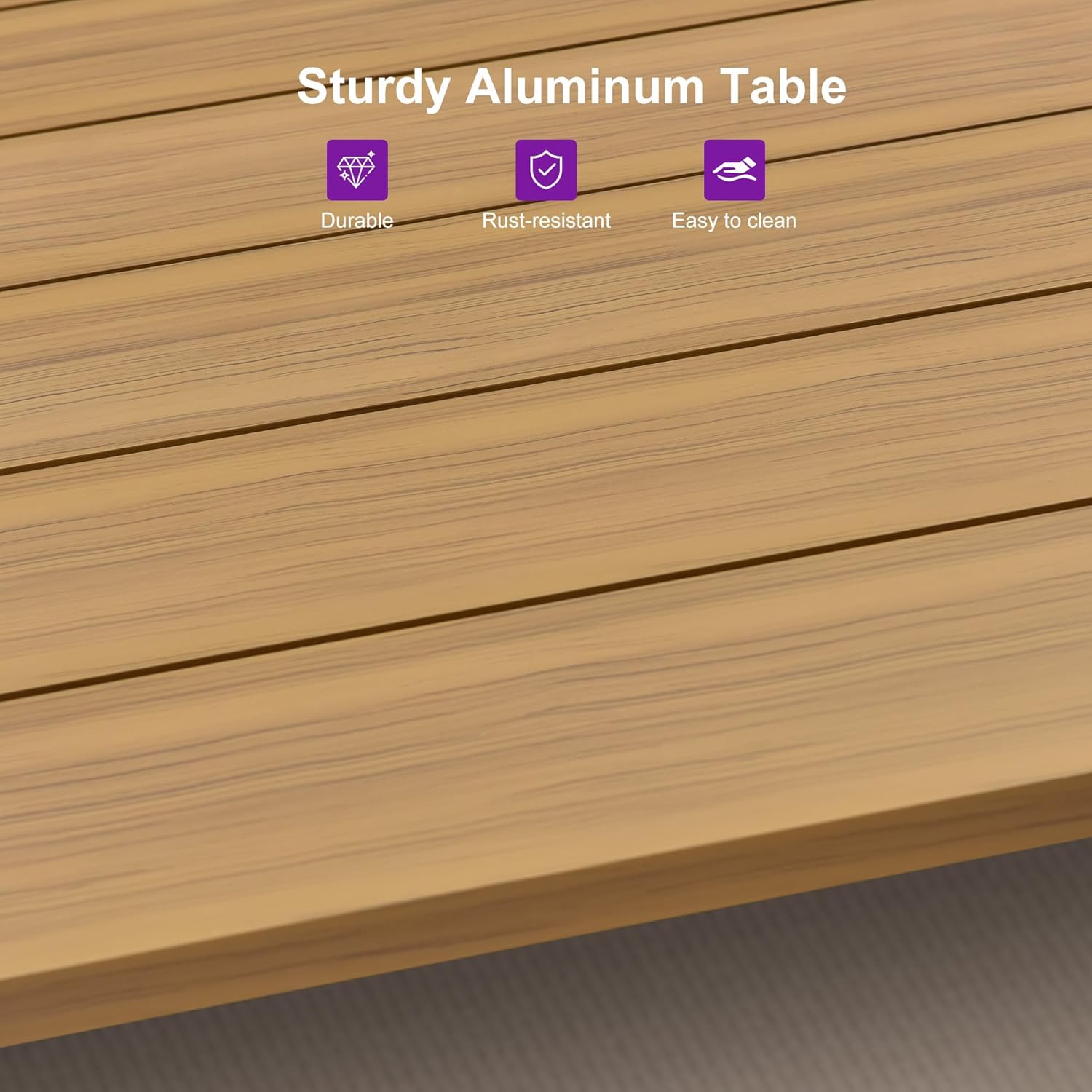 • Sturdy Aluminum Frame: With an aluminum frame, this outdoor table and chairs set provides exceptional stability and durability. The lightweight yet robust design ensures that the set remains solid and reliable for years to come.