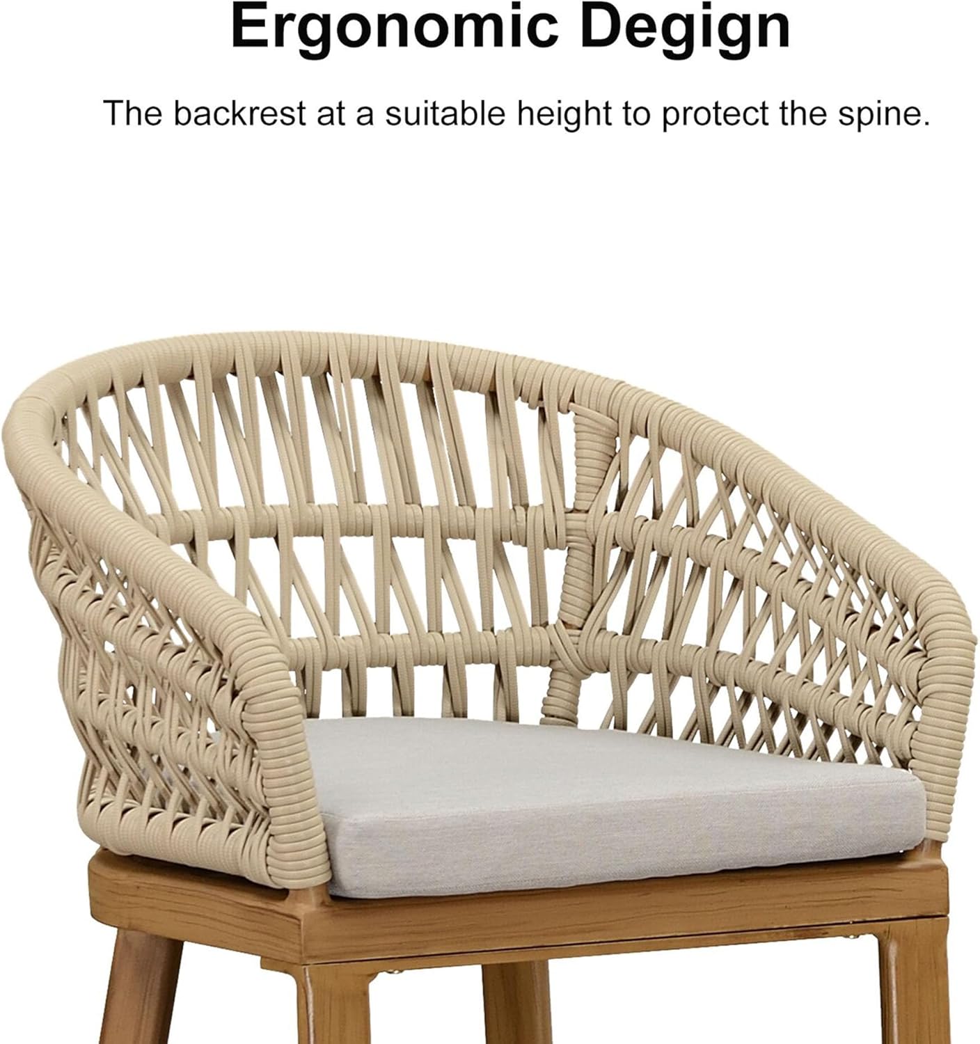 • PE Rattan Backrest: The chairs are thoughtfully designed with a PE rattan backrest, providing both style and durability. This intricate weaving technique not only adds visual appeal but also ensures long-lasting performance.