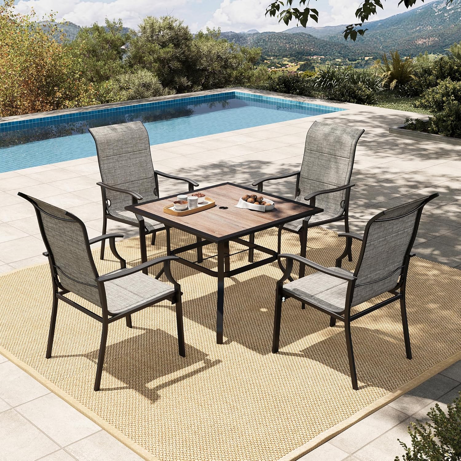 HERA'S HOUSE 5 Pieces Patio Dining Set, Outdoor Dining Set for 4, 4 x Textilene All Weather Dining Chair, 1 x 37 Square Dining Table, for Lawn Garden Backyard
