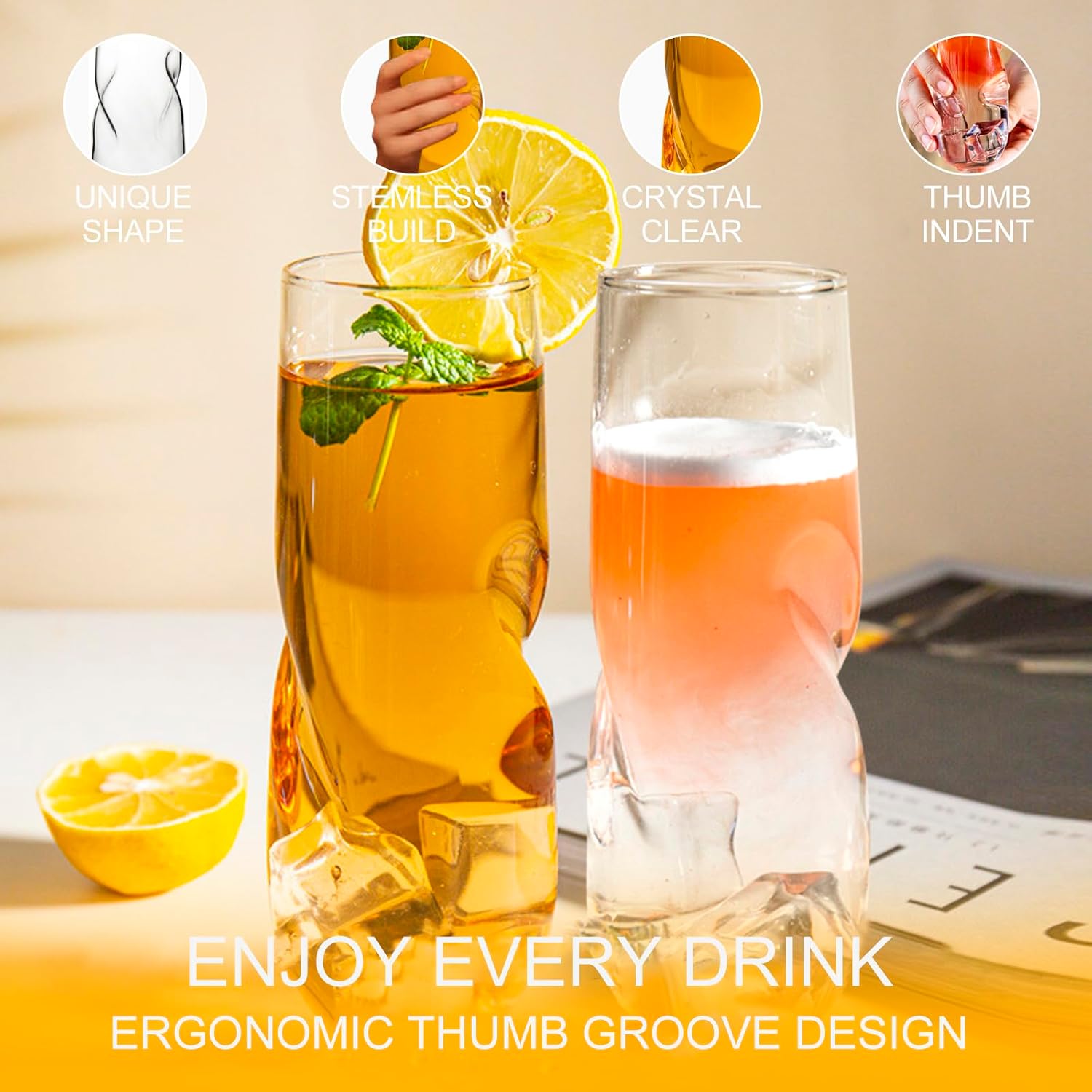 • Multi-purpose Use:These stemless wine glasses with thumb grooves are elegant and exquisite, red wine glass is suitable for use at the bar and in outdoor camping. funny wine glasses are perfect for taking photos, hosting parties, and as souvenirs.