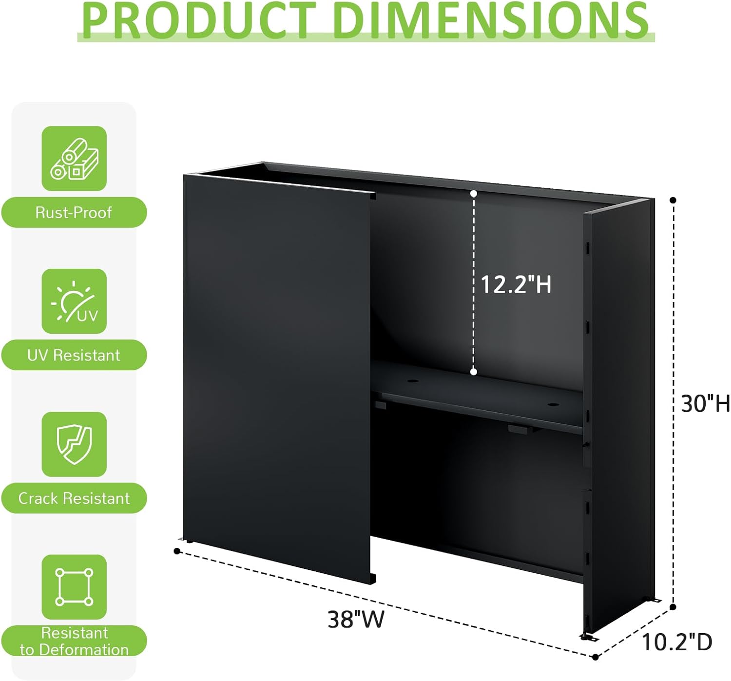 • AMPLE SPACE: With exterior measurements of 38"W x 10.2"D x 30"H, the outdoor planter offers ample space for your plants, like faux cedar trees, grouping several plants.