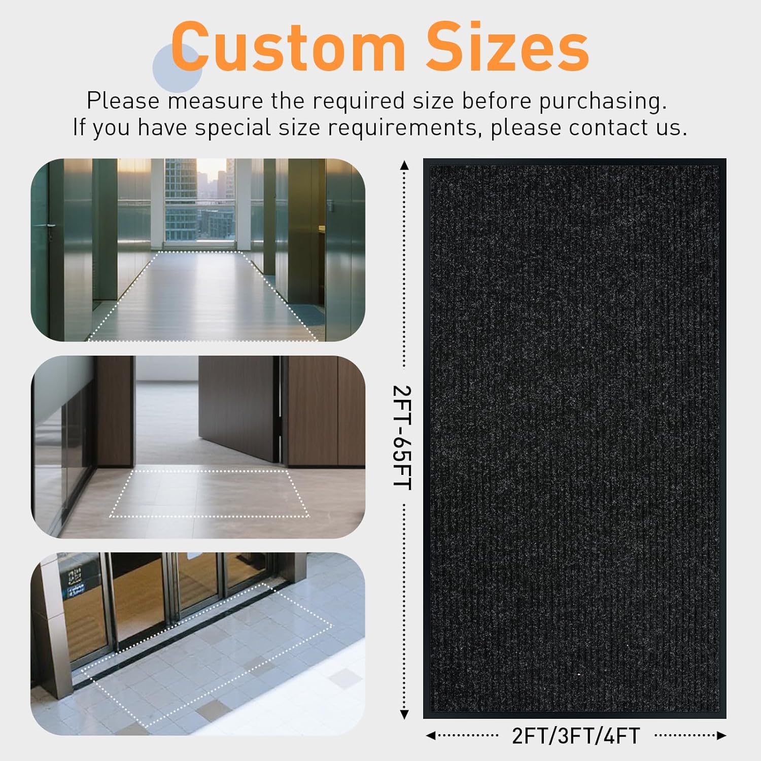 - 【Custom Sizes Available】The Commercial outdoor door mats are available in widths of 2ft, 3ft, and 4ft, with lengths ranging from 2ft to 65ft. (Note: Please measure your space before ordering. All custom muddy carpets for indoor use are finished and inspected in the U.S. before shipping.)