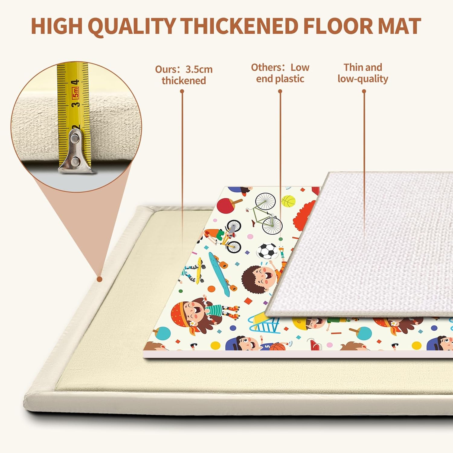 - 【All-Purpose Baby Mat】Featuring a memory foam core, this baby rug is soft, foldable, and versatile. Use it as a travel play mat, a tent mat for kids, or an area rug. Suitable for both indoor and outdoor use, this playpen mat is durable, fade-resistant, tear-resistant, and equipped with non-slip dots on the bottom to prevent slipping