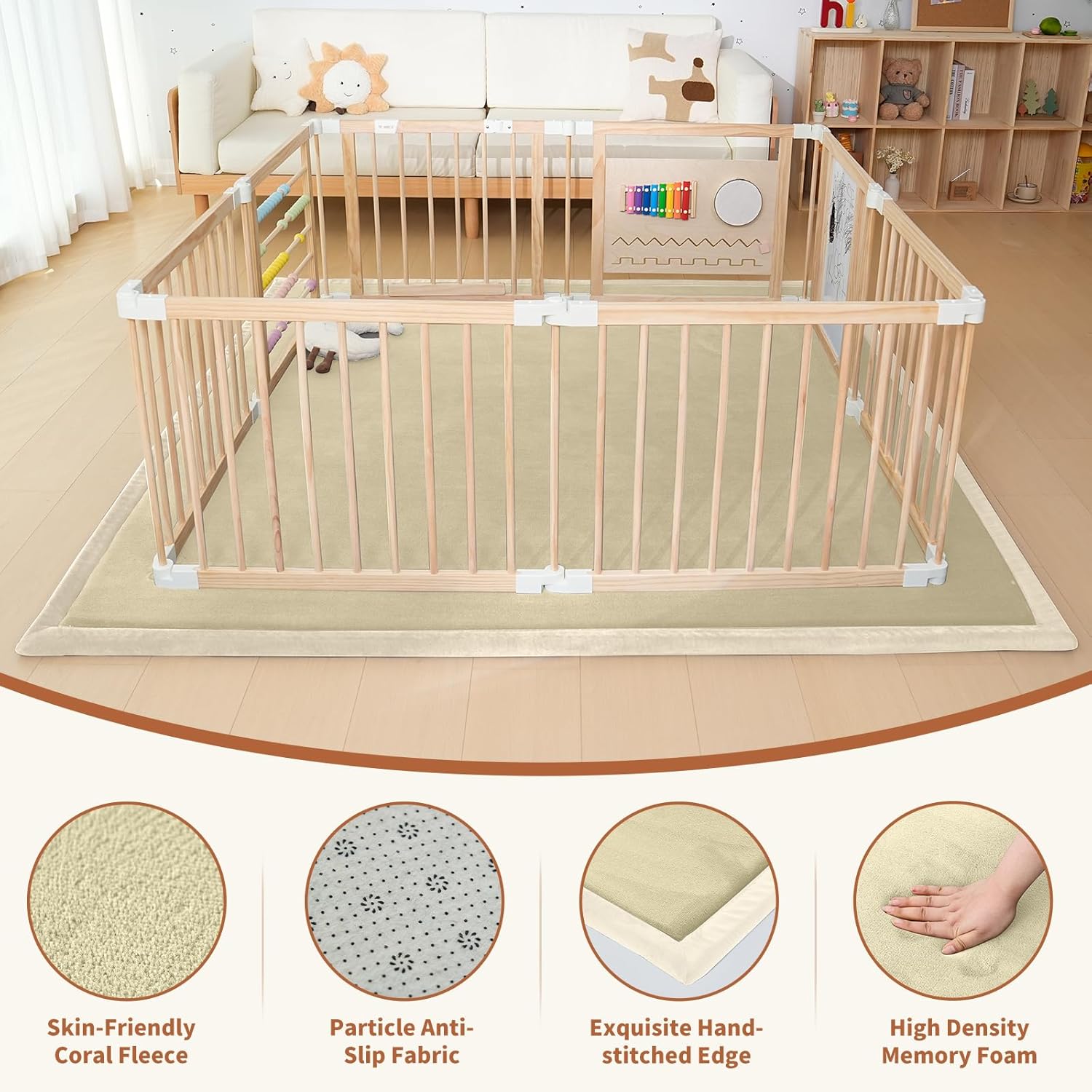 SUNYRISY Baby Play Mat for Floor 80 x 80in, 1.4in Thick Memory Foam Padded Play Mats Baby Rug, Soft Velvet Infants Toddler Kids Crawling Mat for Nursery, Non-Slip Bottom, Beige