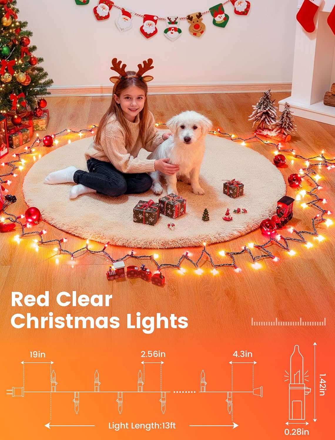 - 50 count Incandescent Christmas Lights: Red and clear mini light come with Extra 4 Bulbs & 4 Spare Fuses.Total length 4m/13feet with 7cm/2.76in bulb spacing.Ideal for a variety of holiday lighting decorations.