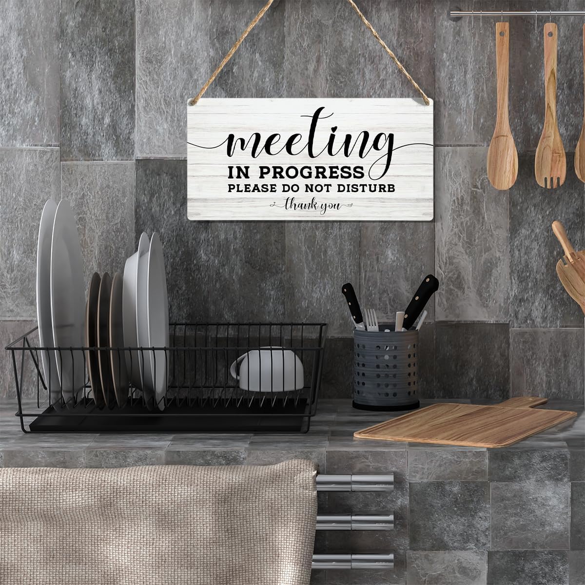 Meeting In Progress Sign, Office Door Hanger, Office Door Do Not Disturb Sign, Wooden Hanging Plaque 12 x 6 Inch, For Office Bedroom Living Room Home Decor Gifts