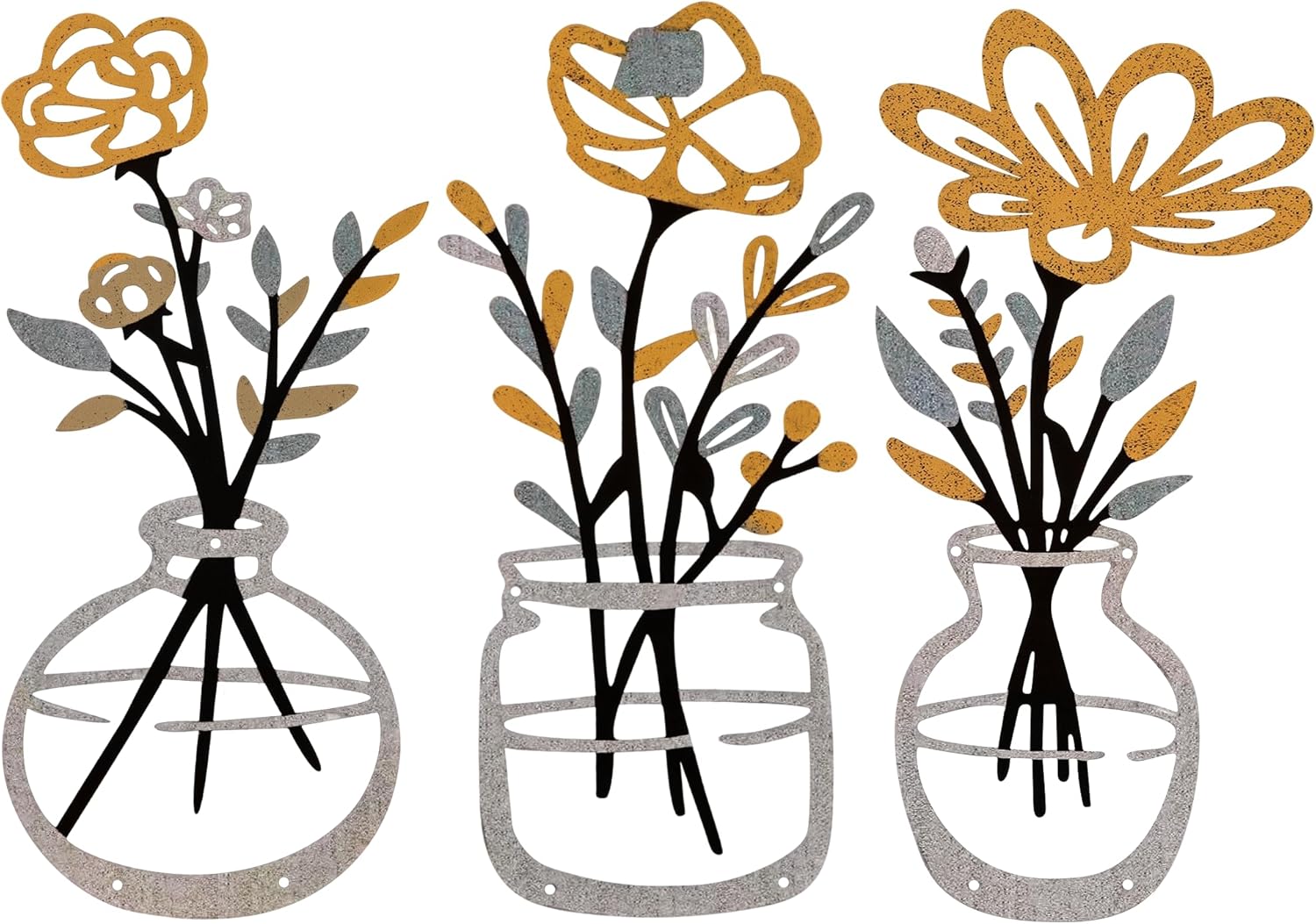 Luckinds Metal Flower Wall Art 3 Pieces, Rustic Farmhouse Decor Wall Decor Metal Wall Sculptures Hanging for Kitchen Bathroom living room