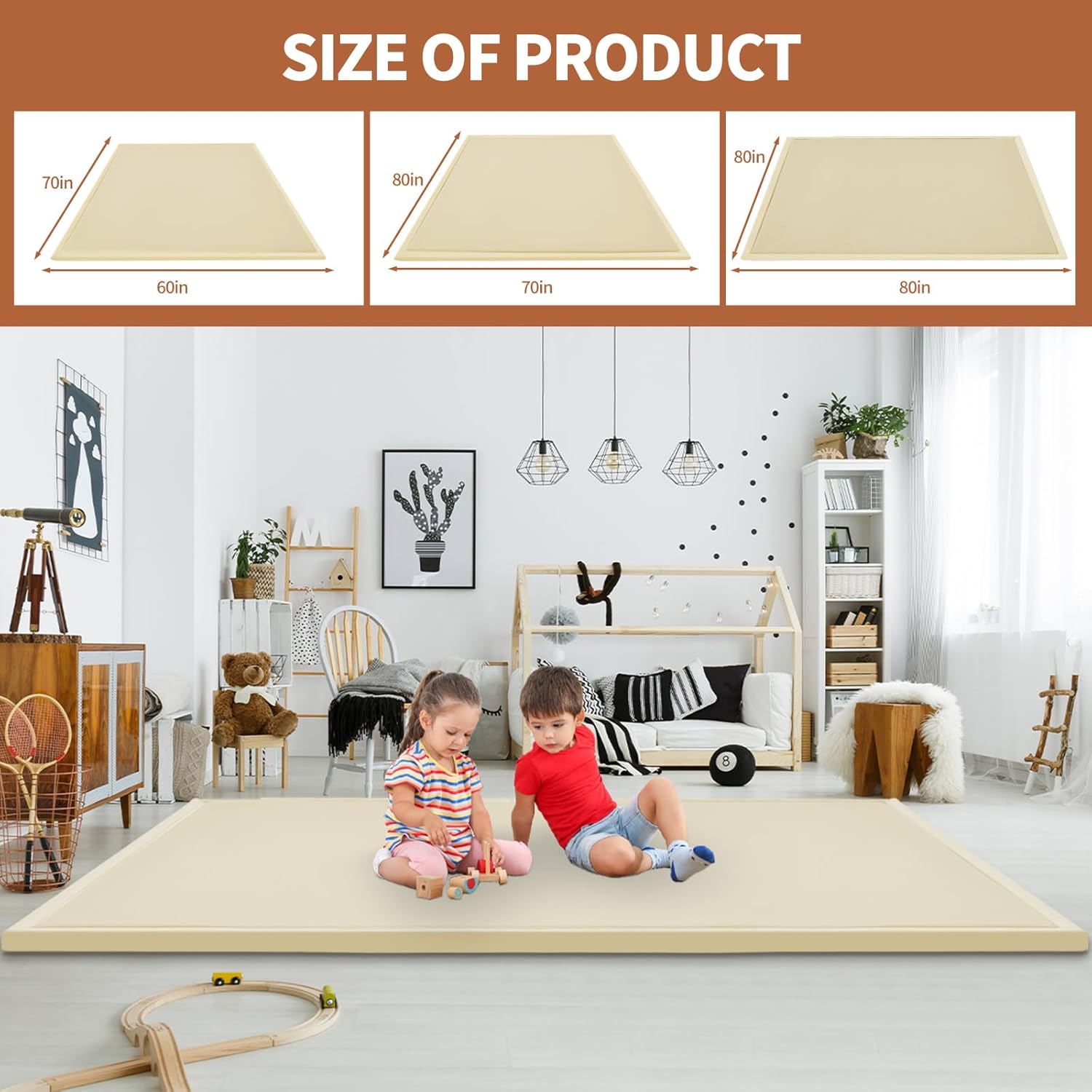• THICK COMFORTABLE PLAYMAT - Our play mat features super soft coral velvet fabric with high-density memory foam padding, offering approximately 1.4 inches of thickness. The nursery baby rug is breathable, colorfast, and gentle on baby's skin, providing a cushioned surface that helps reduce the impact of falls during playtime