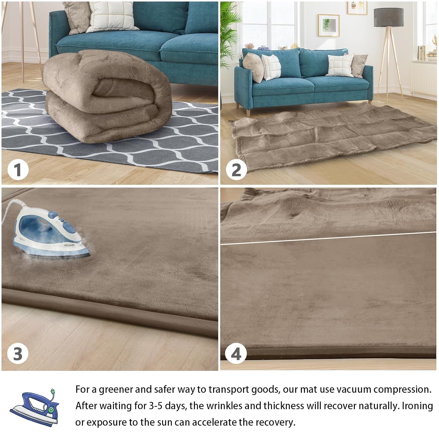 - ๐HOW TO CARE FOR YOUR MAT:When you open the package,it may be wrinkled,very flat and inelastic.Don't fret - this is normal! As long as it is left for 3-5 days, the mat will naturally regain its thickness and elasticity. we recommend steaming or ironing it to speed up recovery. After you have completed the steaming/ironing, your thick floor padded mat should rebound and be ready to use!