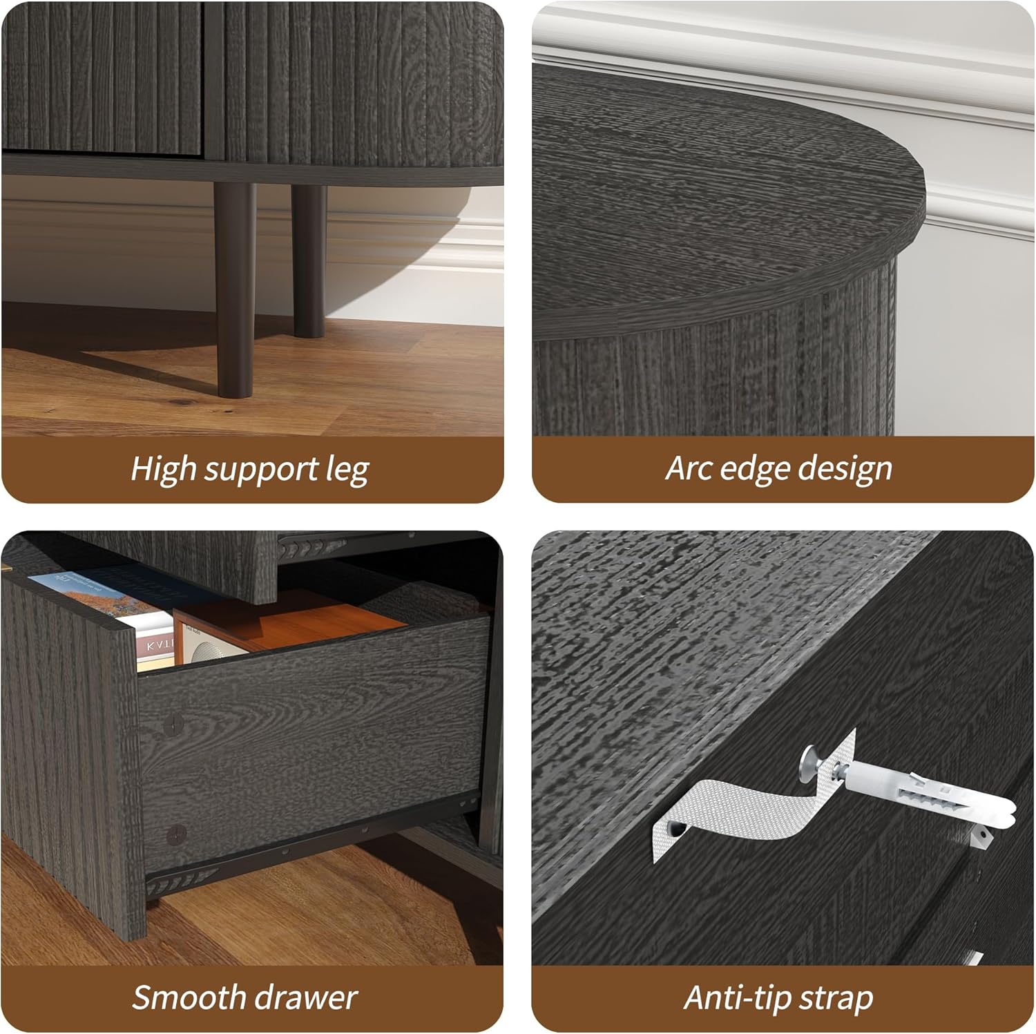 • Elegant Modern Design:​​ The striking black wood tv stand features an elegant ribbed design complemented by sleek gold handles,creating a luxurious and contemporary centerpiece for any living space. The unique arc edge design adds a smooth, safe, and visually appealing touch.