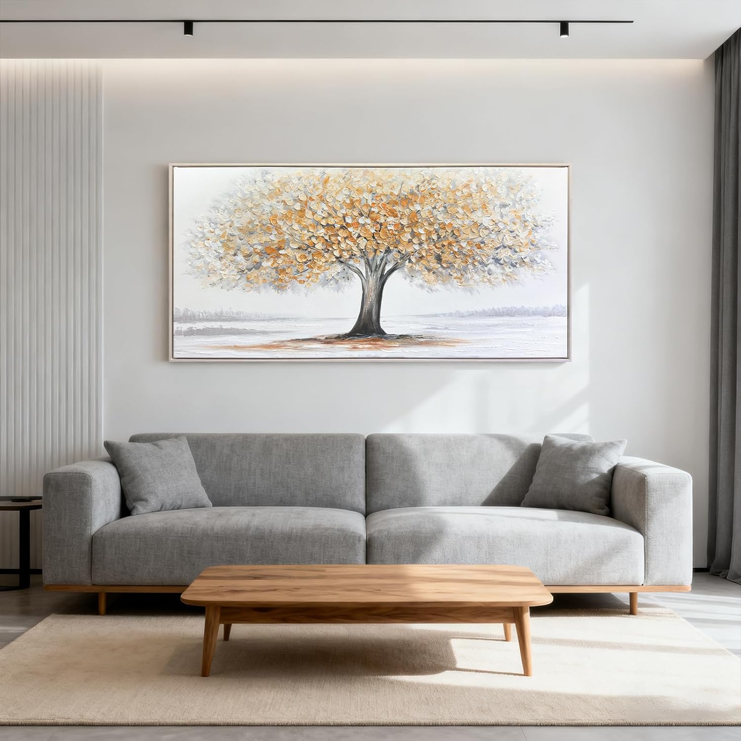 White Tree of Life Canvas Wall Art, Modern Abstract Textured Painting, Large Framed Panoramic Landscape Artwork for Living Room, Bedroom, Office, Home Decor 60"x30"
