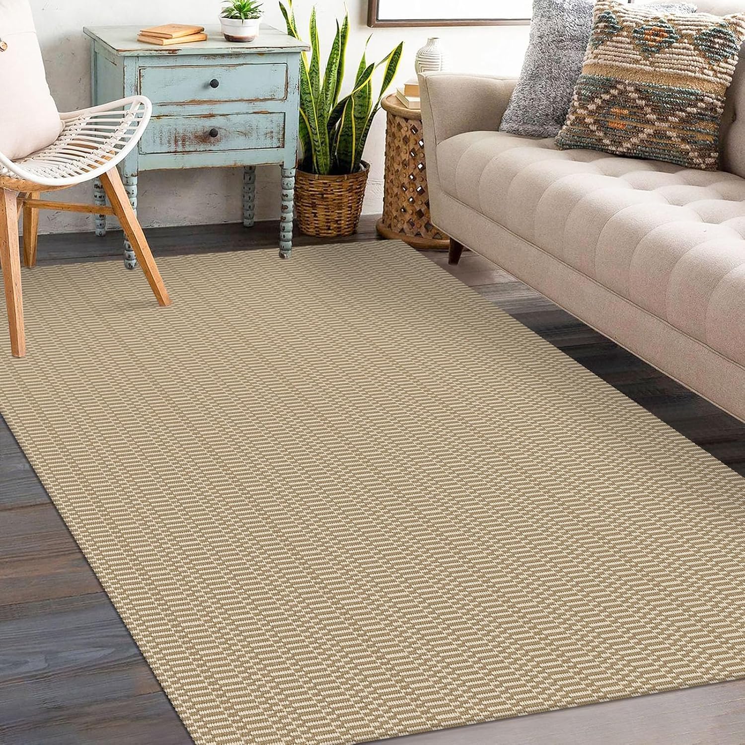 - Color Variation Notice: Woven in beige and tan tones, this rug features a textured checkered pattern. It is not a solid color; the alternating yarns create depth and variation, giving a natural and versatile look