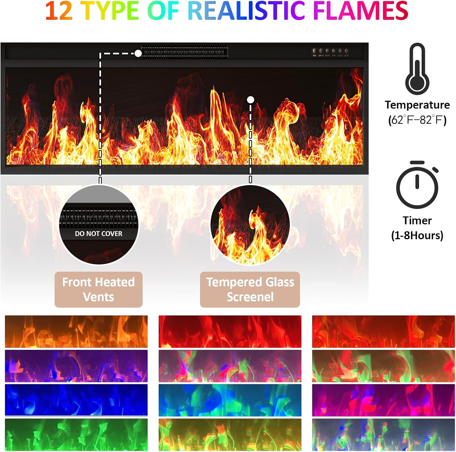 • 【Temperature and Time Setting】The 47" electric fireplace can be heated or unheated, adjustable between 750 watts and 1,500 watts.You can adjust the temperature from 62°F to 82°F and the time setting is from 0 to 8 hours. Comes with a handy remote control for convenience.