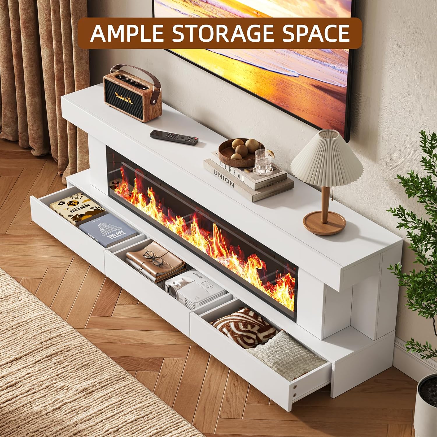 • 【Stylish & Functional Fireplace】The electric fireplace's flames are adjustable in 12 colors and 5 levels of brightness to add interest and energy to your room.Featuring a generous 66.2" top surface and 3 Drawers which is able to provide enough storage space for media devices, gaming consoles, DVDs, and other accessories.