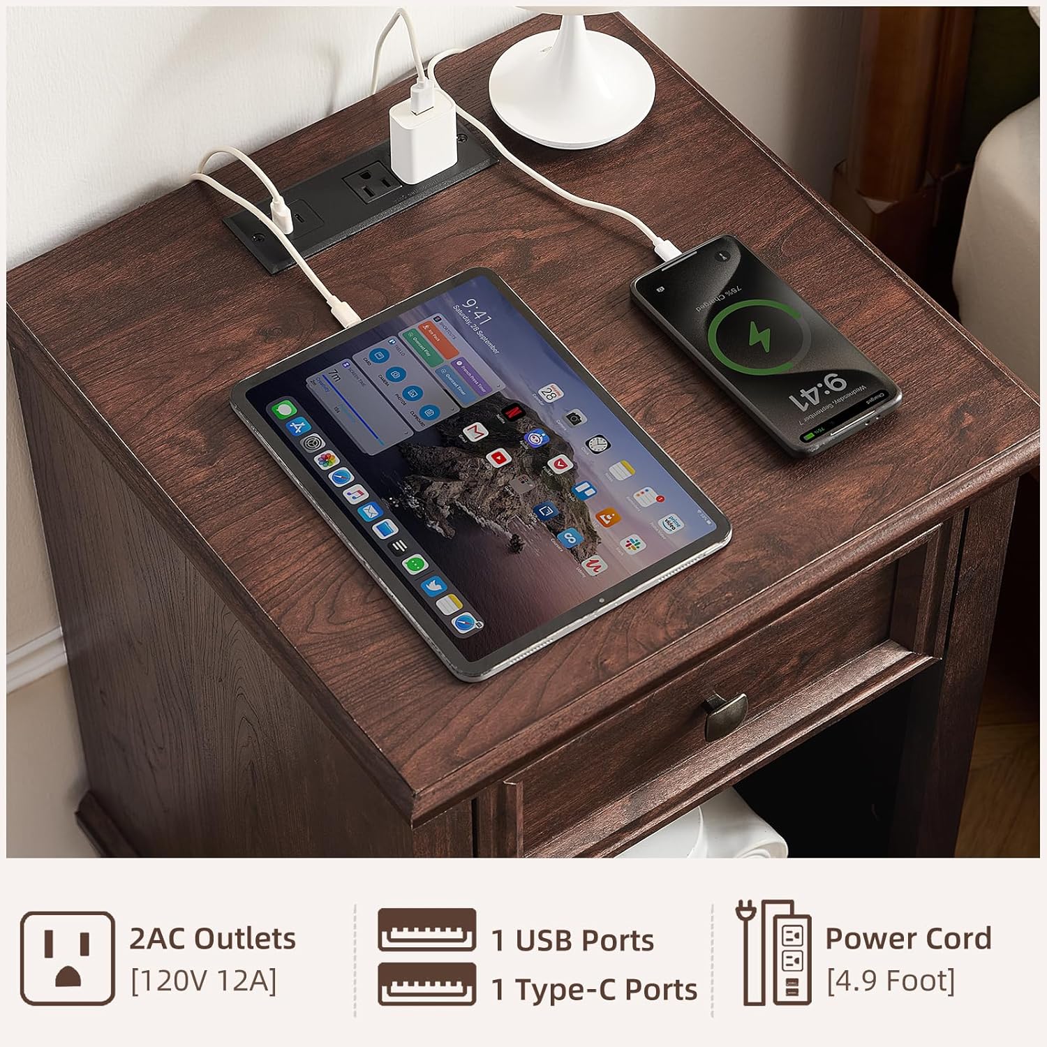 - 【Built-In Charging Convenience】:Each brown nightstand with charging station includes a built-in power panel, making it easy to charge phones, tablets, or other electronics right from your bed or sofa. Ideal for those seeking a brown bedside table with charger station that combines function with style.
