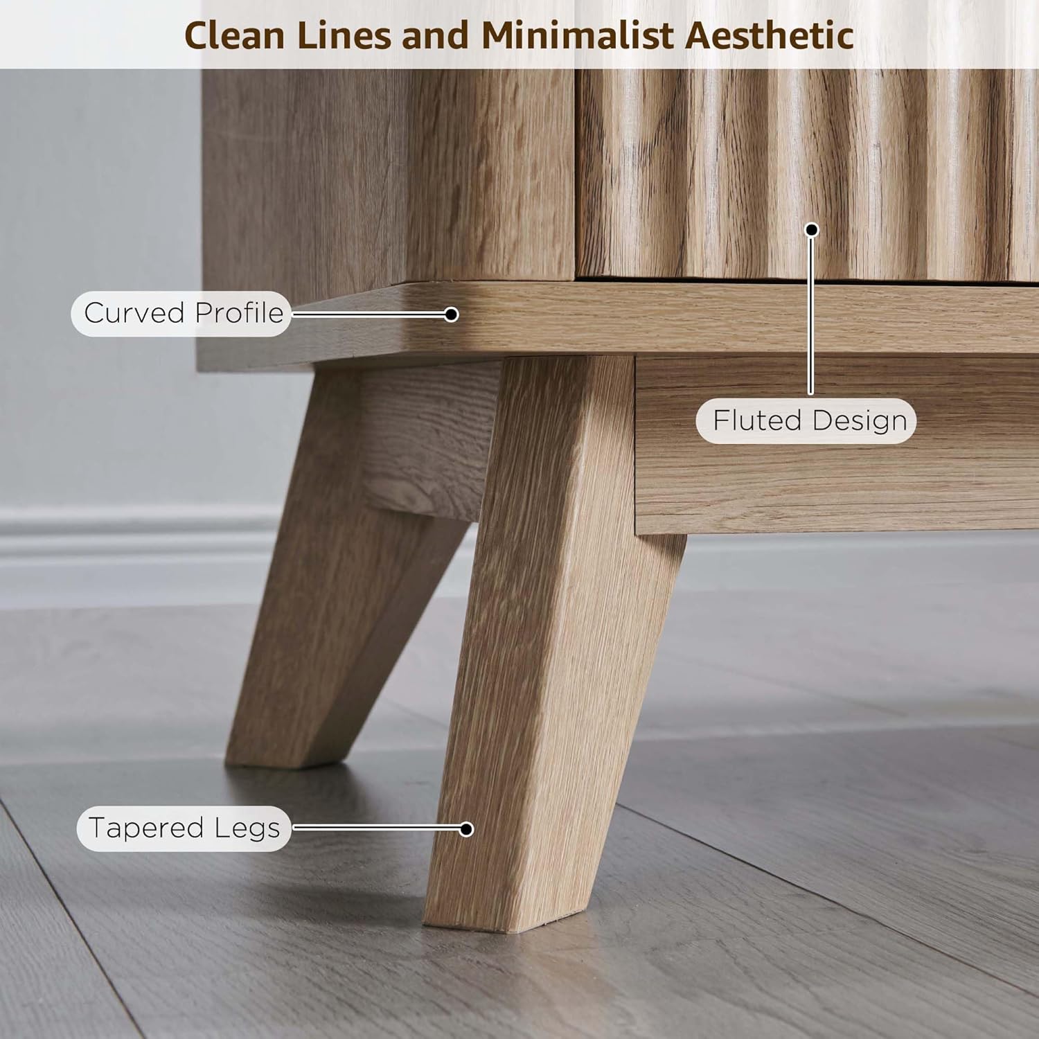 • 𝗘𝗹𝗲𝗴𝗮𝗻𝘁 𝗗𝗲𝘀𝗶𝗴𝗻: This TV stand boasts exquisite fluted details and a curved profile, echoing the timeless elegance of mid-century modern style. Its modern twist makes it a stylish and versatile addition to any interior.