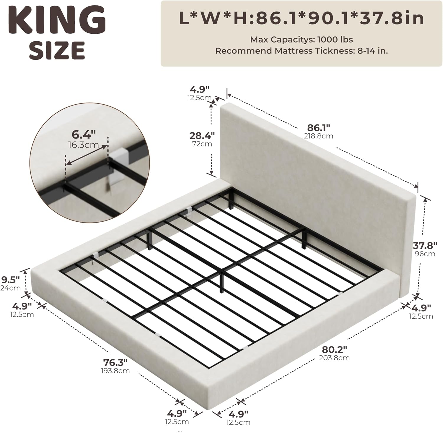 • Say Goodbye to Stubbed Toes: 5-inch high-resiliency foam removes sharp edges. Certified platform bed frame king size ensures reliable protection for active sleepers, families with children and pets.