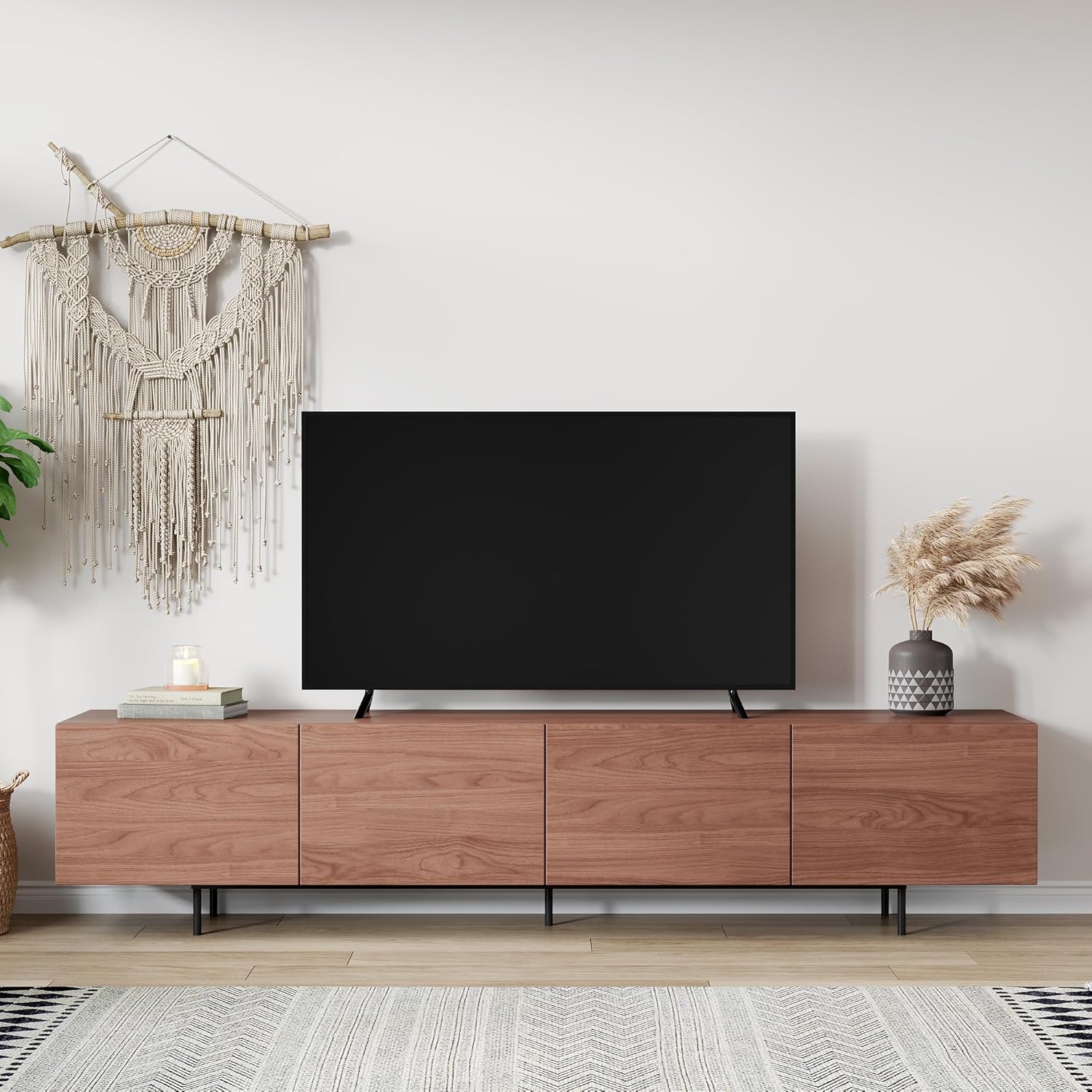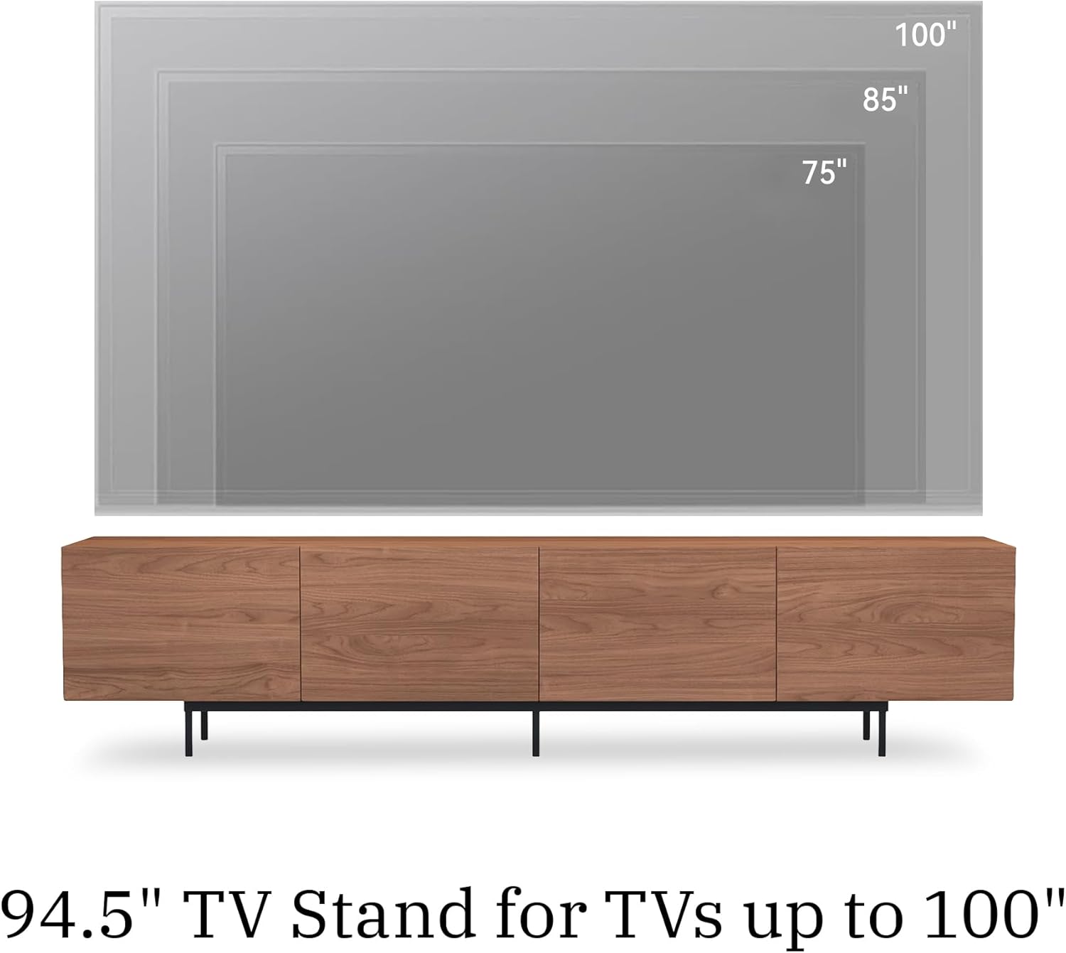 Mid Century Modern TV Stand - 94.5" Walnut Entertainment & Media Console for 65-100 Inches TV, 4 Cabinet Doors with 6 Storage Compartments, Cable Management, Stylish Living Room Center (Walnut, 94.5")