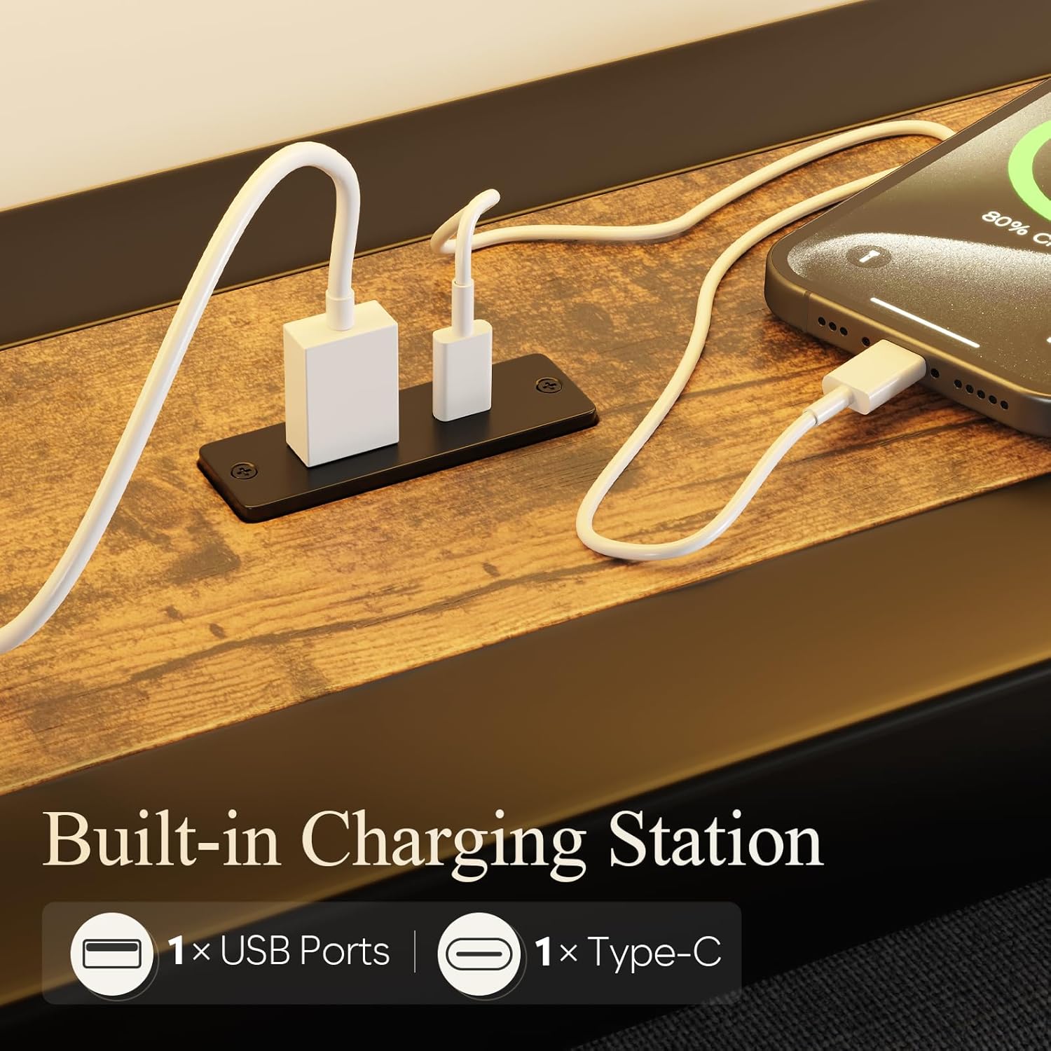 • 【SMART LED LIGHT 4000 COLORS & CHARGING STATION】This queen storage bed frame with charging station and led lights has 1 USB port and 1 type-C port, making it easy to charge your devices and adjust led colors, brightness, and modes to fit your bedroom style