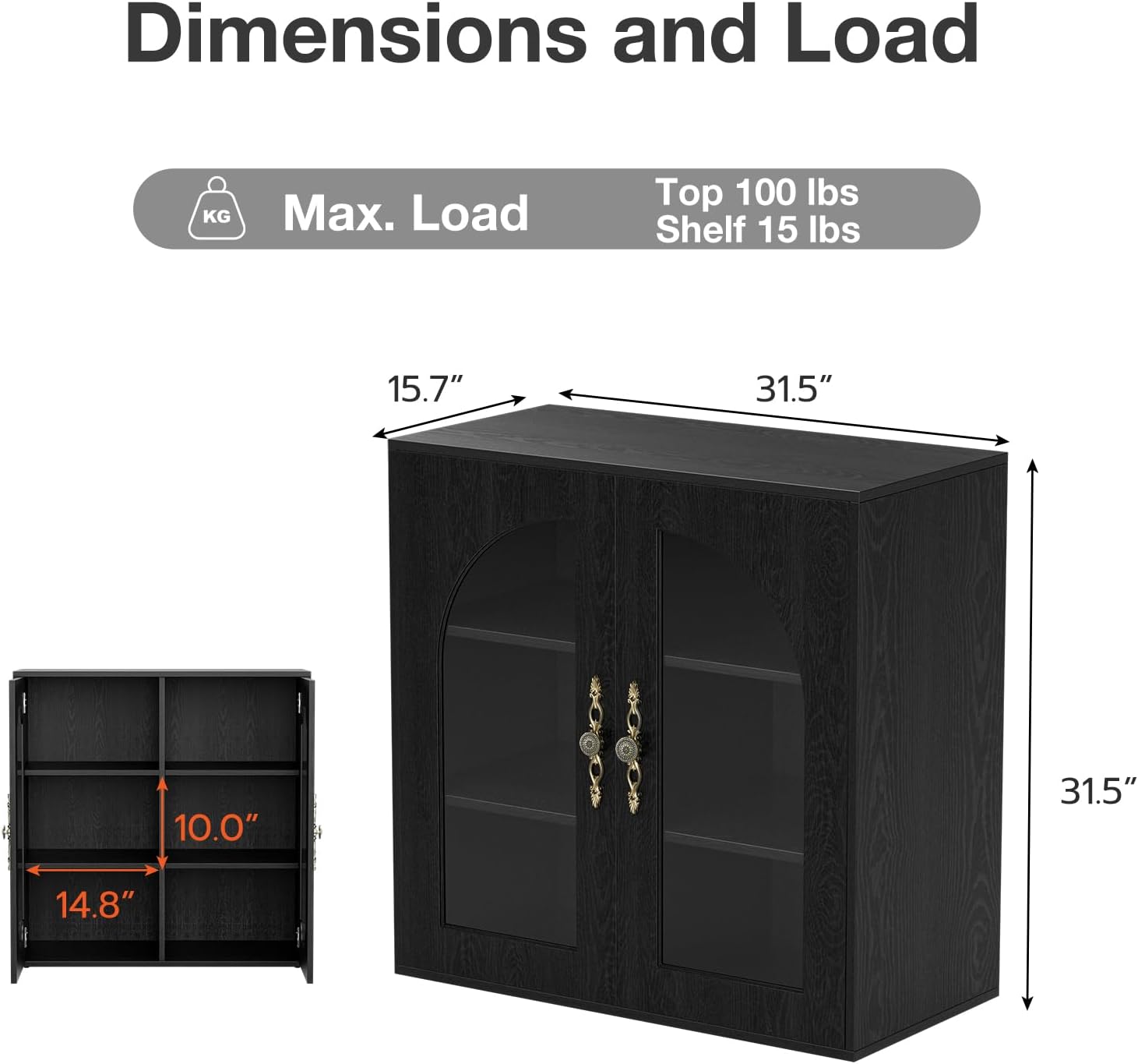 Modular Buffet Storage Cabinet, Glass 2-Door Kitchen Sideboard Buffet Console w/Adjustable Shelves, Wood Modular Organizer for Kitchen Living Room, 31.5 Inch