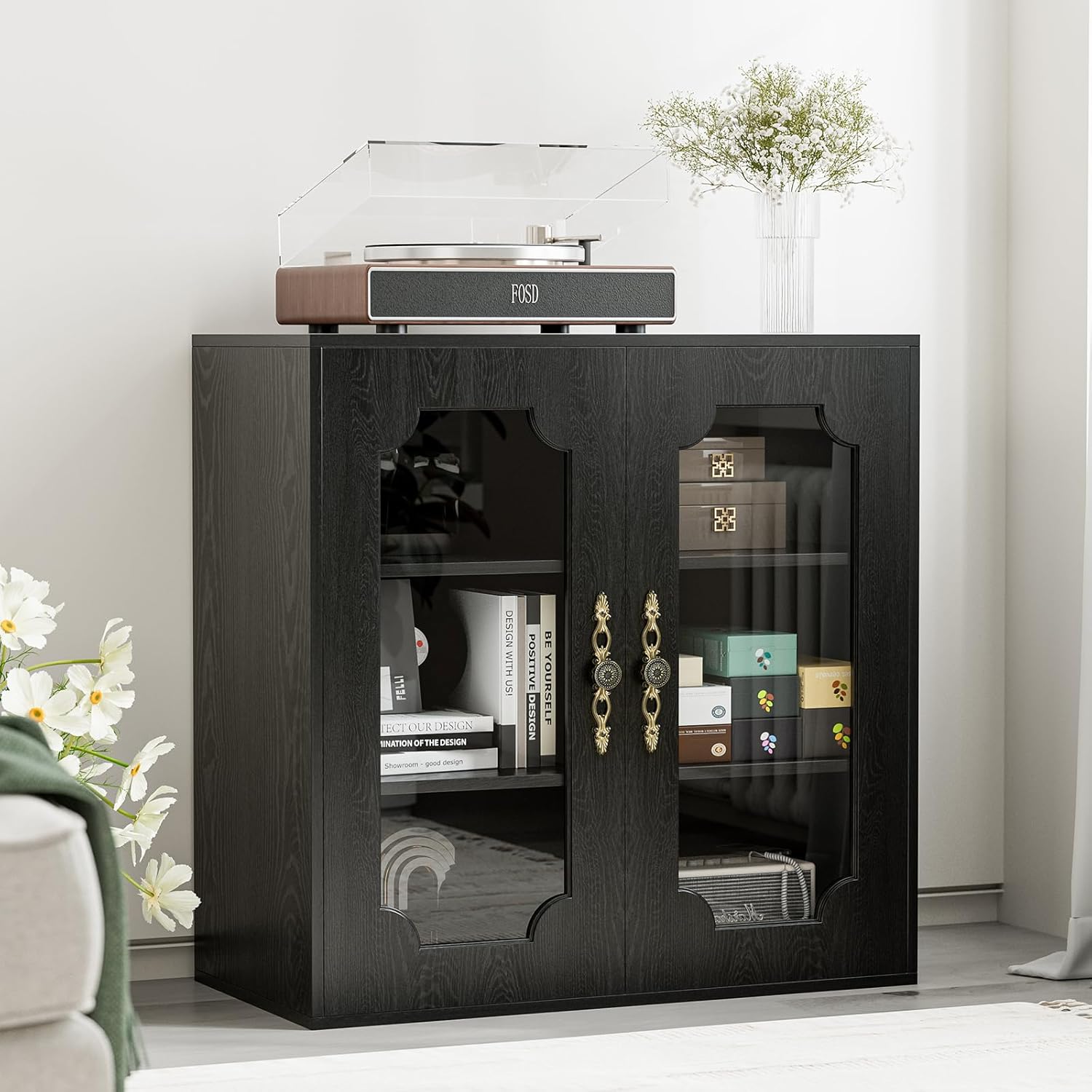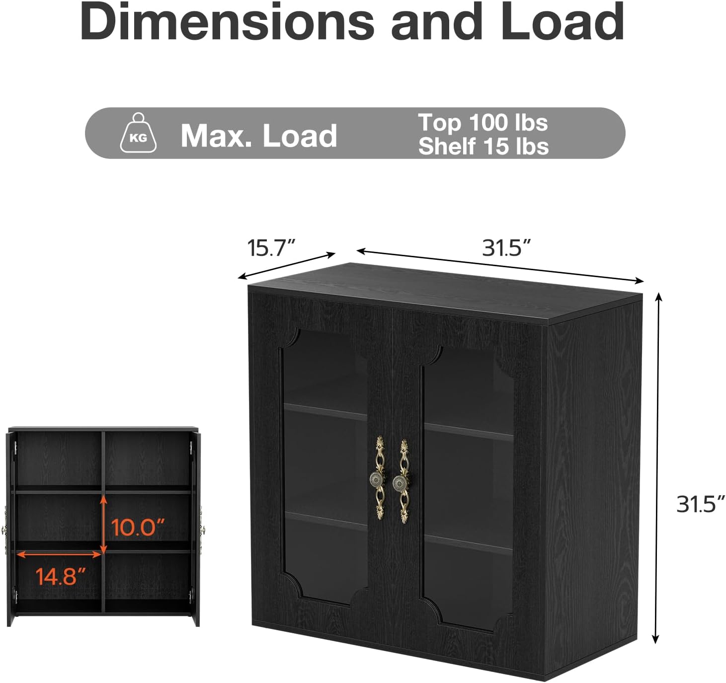 • Replaceable Door Panel:Features recessed door panel frames, equiped with 2 kinds of panels, you can diy the cabinet door with glass or wooden panels.The glass doors could display your favorite decor and convenient for using, while the wooden doors provide hidden storage for dining essentials or others.
