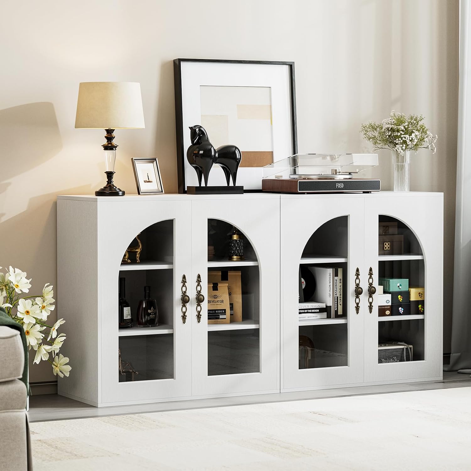 • Classic Modern Symmetry Design: This modern sideboard features an Symmetry silhouette enhanced by handcrafted brass handles, trendy arched details with recessed DIY panel frames, paired with natural wood grains,reflecting superior craftsmanship and a design-classic approach for contemporary interiors.